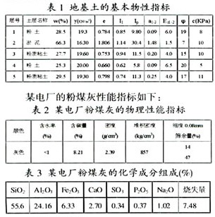 建筑物擬建場地地形較平坦,地層分布較穩定,第2層土屬淤泥質土,土層極軟且較厚,壓縮性很高,設計時應加強建筑物的整體剛度。場地地震設防烈度為7度,場區內飽和粉土不液化。擬建建筑物為五層磚混結構,由于天然地基不能滿足設計要求,經方案比較采用粉煤灰粉噴樁進行加固處理,工程樁施工前進行了室內配比及現場靜載試驗。地基土的基本物性指標如表1.。