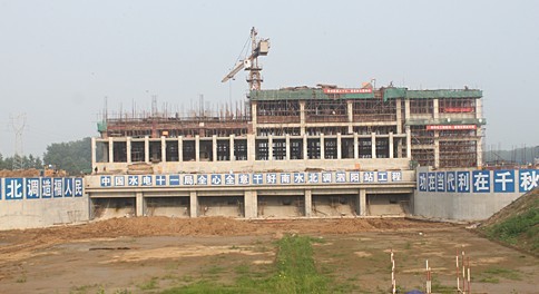近期,經過8小時的連續奮戰,東線泗陽站工程南側主廠房成功封頂,標志著項目的土建工程基本結束,即將進入設備安裝階段。