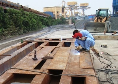 8月14日至16日,沙鋼攪拌站利用生產間隙,組織生產部員工對地磅進行了認真細致的維護。本次維護以焊補為主,對承重部分進行了鋼板焊接加固,增加了地磅的承重能力。為了不耽誤正常進料計量,維護人員在酷暑的炙烤和電弧光的輻射下,不辭辛勞,爭分奪秒,從早到晚一直忙綠在工作現場。
