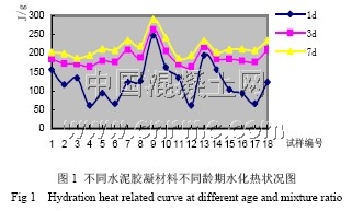 (2)大比例單摻粉煤灰或單摻磨細礦渣可顯著降低膠凝材料的早期水化熱,對后期水化熱也有較大的降低作用,采用三組分(含水泥、礦碴、粉煤灰)膠凝材料配制的混凝土,可以配制出絕熱溫升小并利于改善混凝土的抗裂性能的低熱混凝土。