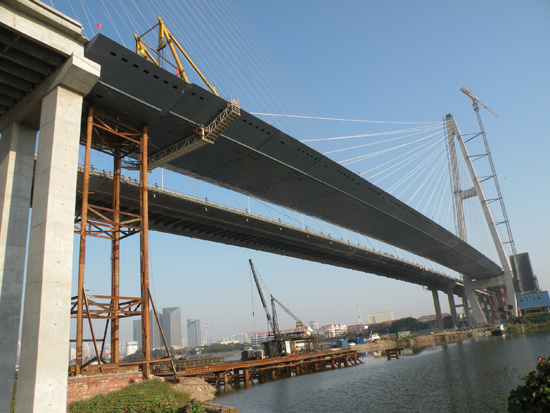2011年10月5日24時30分,隨著由中國鐵建中鐵十五局集團公司承建的天津集疏港公路新建海河大橋主跨310米鋼箱梁懸臂拼裝成功合攏,標志著連接濱海新區多條交通主干道的集疏港公路所有施工難題被攻破,至此,作為解決天津港快速交通問題,實現天津對于北方經濟腹地的輻射功能的天津集疏港公路全線貫通在即。