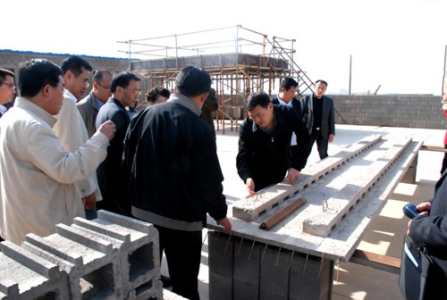 當天上午,參加審查會的專家和領導實地考察了位于臨洮中鋪工業園區預制帶肋底板的生產基地,查看了生產情況,聽取了基地負責人對于生產和應用情況的介紹。