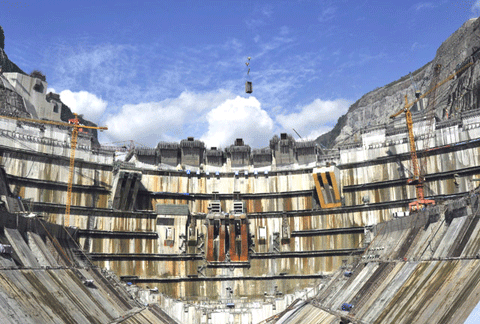 截至10月26日,水電八局承建的溪洛渡水電站大壩工程10月份完成混凝土澆筑18.6萬(wàn)立方米,在大壩全面進(jìn)入復(fù)雜部位施工階段,超額完成業(yè)主下達(dá)的 月計(jì)劃任務(wù),得到業(yè)主、監(jiān)理等單位一致好評(píng)。至此,2011年全年累計(jì)完成混凝土澆筑178.1萬(wàn)方,占業(yè)主下達(dá)年度計(jì)劃的87%。目前,大壩最高壩段 7#、23#、25#已經(jīng)澆筑到EL.503米高程,最低20#壩段澆筑到EL.476米高程。