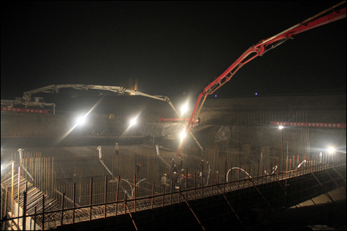 11月16日凌晨3時,經過施工人員近9個小時的連夜奮戰,東線泗洪站樞紐工程泵站第一次底板澆筑工作順利完成。此次澆筑開始于15日18時30分,累計澆筑混凝土537立方米。