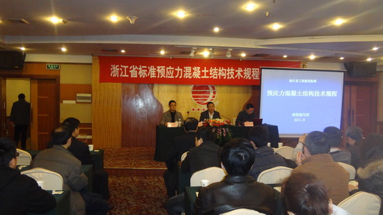 《預應力混凝土結構技術規程》(DB33/1067—2010)已于2010年7月1日起實施,為提高寧波市預應力混凝土的設計施工與監管水平,根據2011年建設培訓計劃,市住房和城鄉建設委員會于2011年12月8日在日月賓館舉辦了浙江省工程建設標準《預應力混凝土結構技術規程》專項培訓。各縣(市)區住房城鄉建設管理部門相關人員、相關建筑設計、審圖、施工、監理等單位技術負責人員共100余人參加了培訓。