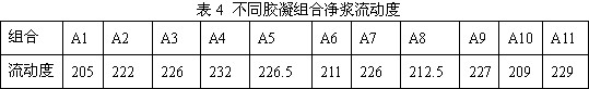 可見有5種組合凈漿表現都在226以上,對其中4組進行了混凝土的驗證,A11不僅混凝土粘性小,而且強度發展好。
