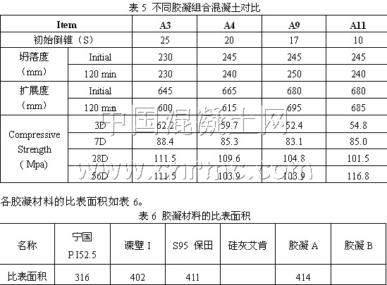 目前國際上研究高強高性能混凝土比較通用的方法是在混凝土中同時摻入高性能外加劑和礦物摻和料的雙摻技術法。我們認為對于高強混凝土在原材料的基本性能得到保證的前提下,混凝土的密實度是混凝土高強的關鍵。同時為保證高強混凝土能泵送至百米以上,混凝土的泵送性能也是我們關注的重點。