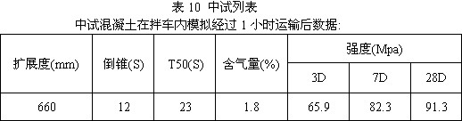 在10組的驗證試驗中,擴展度控制在620~720mm, 28天平均強度為101.7 Mpa,方差為5.57
