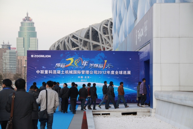 2月25日17時,以“成就20年關懷每一天”為主題的中聯–CIFA二代復合技術新品全球巡展在北京盛大開啟。白色底盤典雅高貴,橙色臂架高擎云霄,數十臺套新品,在最具魅力的“水立方”國家游泳中心與“鳥巢”國家體育場的映襯下,接受了來自全國近千名混凝土業內人士與媒體的檢閱。這是奧林匹克公園首次接受大型工程裝備集中全景展示。中聯重科與歐洲高端研發制造技術的高度融合,加以現代化的工業設計理念和制造工藝,中聯重科高端裝備制造的嶄新形象,堪與“水立方”和“鳥巢”媲美。