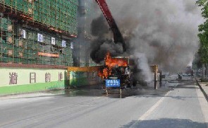 “我正在車上進行混凝土輸送作業,突然就從車底噴出一團大火,瞬間將車頭和輸送泵吞噬了。我馬上下車檢查,見情況不妙,車上又沒有滅火器,馬上報了火警?!?月7日上午,桐廬瑤琳西路上一輛正在施工作業的混凝土泵車發生自燃,司機黃師傅想到當時的那一幕,還是心有余悸。 7日上午9時30分左右,司機黃師傅正在混凝土泵車上進行混凝土輸送作業,剛剛輸了一半混凝土,突然從車底冒出大火,整個車頭和輸送泵都被大火包圍,車上也沒有配滅火器,情急之下,馬上撥打了119求救。接到報警后,桐廬消防中隊迅速出動。在距離現場500米外,救援官兵就看到不斷有黑色的濃煙向上冒出。