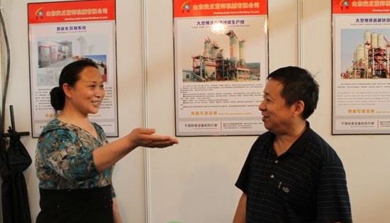 安丘富邦副總經理孫世芬為湖北省散裝水泥辦公室調研員彭漢橋介紹該公司業務情況