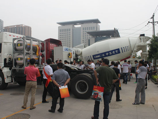 參觀樣車環(huán)節(jié),中集凌宇上裝聯(lián)合卡車底盤的LNG混凝土攪拌運輸車以其靚麗的外觀和卓越的性能成為車展的焦點,有的客戶向銷售經(jīng)理詢問價格;有的客戶上車試乘;有的客戶與技術(shù)人員研討產(chǎn)品性能,展車周圍集滿了參觀的嘉賓。雖然此次參觀的客戶大多都是行業(yè)間相關(guān)企業(yè)嘉賓,但對中集凌宇LNG攪拌車產(chǎn)品的認可,也使得中集凌宇的參展人員深感自豪,更加堅定了我們做好罐車、“打造中國罐車第一品牌”的信念。