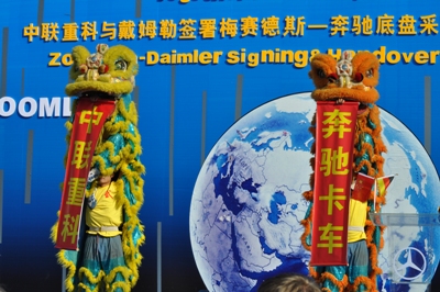 12月3日,在長沙中聯重科麓谷工業園里聚集了海內外40多家媒體,共同來見證中聯重科與戴姆勒簽定工程機械底盤全球最大單的精彩瞬間。