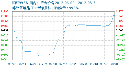 一、2012年8月順酐產(chǎn)品P值曲線圖(漲幅/跌幅:1.99%)