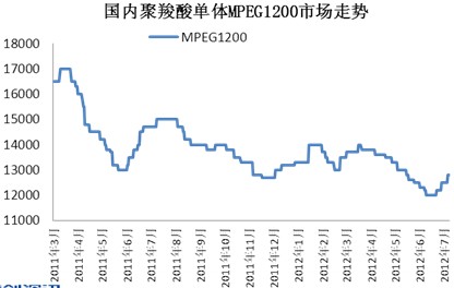 月初,隨著環氧乙烷檢修利好帶動,聚羧酸減水劑市場展開反彈之路。中間商及下游工廠在抄底備貨等利好預期下,本月掀起一波繁榮的采購行情。值得一提的是,前期多處單體工廠停車,需求被制約甚至壓縮。隨著環氧乙烷利好顯現,減水劑工廠需求集中釋放,基本面市場走勢強勁。隨著月中環氧乙烷連番上揚,減水劑市場也水漲船高,本月漲幅在800元/噸,工廠近期表示訂單量充盈,受成本面影響,廠家近期接單較為謹慎,仍有上行的可能。