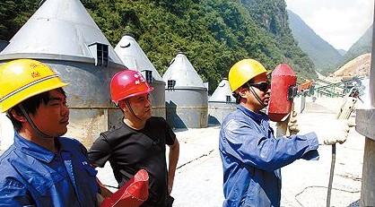 9月14日,建始縣幾名工人在加緊修建商砼生產線。今年,該縣一企業投資3000多萬元興建了一條年產30萬立方米的商砼生產線,主要用于城市新區開發及改擴建工程。據介紹,這條商砼生產線將于下月投入生產,預計年產值過億元。