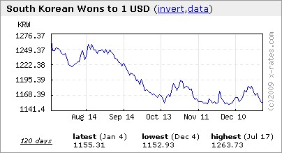 圖二:韓元兌美元近半年來的波動曲線