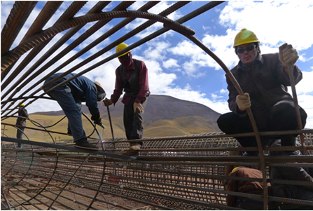 由于該橋橫跨通天河及舊S308線,作為S308線保通工程項目控制性工程,承擔玉樹災后恢復重建運輸的主要任務,加之通天河特大橋每年4月份為融雪期水位上漲,節點工期要求今年4~10號水中墩樁基及承臺必須澆筑完畢,施工難度和工期壓力都非常大。施工單位中鐵五局S308玉曲公路項目部為了確保重點工程組織在前、施工在前、工期在前的目標,自今年8月初在全線率先動工建設以來,為了有序推進通天河特大橋的施工,根據公司施工組織管理及集約化管理推進小組的指導意見,及時調整施工方案、優化施工組織設計、增加設備及人員投入,加強現場安全質量管控。參戰員工發揚“缺氧不缺精神、艱苦不怕吃苦”的精神,在通天河上擺開戰場,全力確保工期的節點目標。