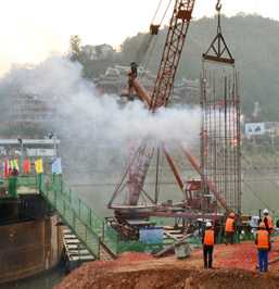 律回春暉漸,萬象始更新。2013年2月3日晚22時(shí)30分隨著最后一方混凝土順利注入,中鐵一局二公司南平新水東大橋項(xiàng)目完成了第一根水中鉆孔樁的施工。該鉆孔樁編號(hào)為4¬--3,樁長60米,直徑2.2米,歷經(jīng)5小時(shí)連續(xù)澆筑,共澆筑混凝土230方。