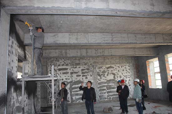 3月8日,紹興市散裝辦、上虞散裝辦和浙江魯氏工貿有限公司等單位一行共9人,調研紹興市預拌砂漿機械化施工效果,獲得了第一手的調研資料。上午,調研組首先參觀考察了紹興益生砂漿有限公司在諸暨大學城的施工項目,現場觀摩了預拌砂漿的機械施工化操作,詳細了解預拌砂漿機械化施工帶來的提高砂漿強度、簡化施工工藝、提升施工效率、降低人工成本等方面的優勢。