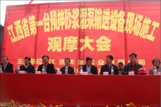 踏青時節(jié),春暖花開。3月29日上午,江西省首臺預(yù)拌砂漿濕泵輸送設(shè)備在南昌市紅谷灘施工現(xiàn)場啟用,標(biāo)志著南昌市的預(yù)拌砂漿施工方式進(jìn)入了全新時代。江西省散預(yù)辦主任劉文斌,南昌市工信委主任詹水發(fā),南昌市散預(yù)辦主任彭紅林、書記王仲良等出席了由江西天潤實業(yè)有限公司組織的現(xiàn)場施工觀摩大會。