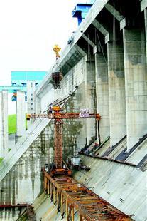 整個加高工程,先是對大壩進行加寬,然后再加高,共澆筑混凝土達125萬余立方米。其間樞紐仍擔負防洪、發電等任務,施工難度大,工藝要求高。施工中,先后攻克了老混凝土拆除及控制爆破、新老混凝土結合、大體積混凝土鋸縫、閘墩鉆孔植筋、炭化層檢測及鑿除、人工鍵槽施工、混凝土溫度控制、高水頭下帷幕灌漿及老壩體缺陷檢查與處理等技術難題。