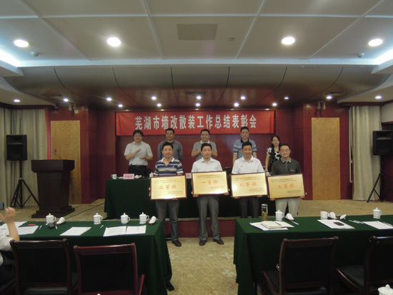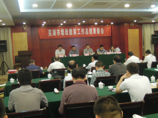 5月28日,蕪湖市墻改散裝水泥工作總結(jié)表彰會(huì)在蕪湖鐵山賓館三棟松苑二樓大會(huì)議室召開,來自全市四縣五區(qū)墻改散裝工作分管領(lǐng)導(dǎo)、榮獲2012年度墻散工作優(yōu)秀工作者、先進(jìn)個(gè)人及市縣區(qū)相關(guān)工作人員近40人參加了會(huì)議。