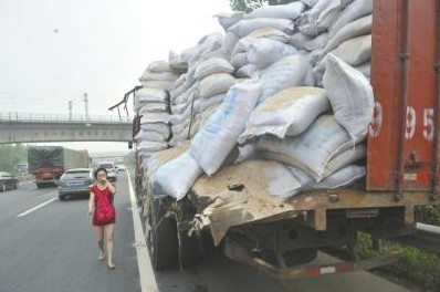 6月18日早上,成都繞城高速的保潔員李素貞頂著太陽清掃了3個小時的路面。這源于凌晨5點多的一場車禍,兩輛大貨車在繞城高速外側距成南高速1公里處追尾,重量超過500公斤的工業原料從被追尾的車上傾瀉而下。