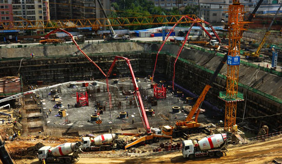 據(jù)了解,完成如此超大體量砼澆筑,在昆明屬于首例。北塔筏板的砼澆筑在施工進(jìn)度上具有里程碑式的意義,標(biāo)志著目前云南省在建第一高樓——昆明西山萬(wàn)達(dá)項(xiàng)目?jī)蓷?07米超高層鋼混結(jié)構(gòu)寫字樓正式進(jìn)入主體施工階段。