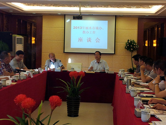 7月18日,麗水市2013年兩辦(墻辦散辦)工作座談會在慶元縣召開,各縣(市、開發區)分管領導和墻辦、散裝辦主任參加了會議,會議由市兩辦主任范世武主持。