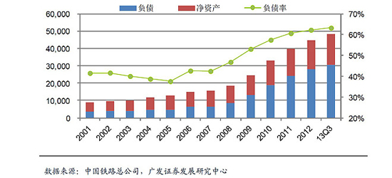 債務(wù)高企的原因在于近年來,中國(guó)鐵路投資迎來歷史上高速擴(kuò)張時(shí)期,但鐵道部的收入增速遠(yuǎn)遠(yuǎn)跑不過負(fù)債增速。