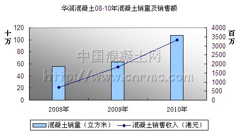 圖1:華潤混凝土2008-2010年混凝土銷量及銷售額