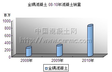 圖2:金隅混凝土2008-2010年混凝土銷量(百萬立方米)