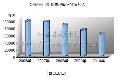 圖3:CEMEX2006-2010年混凝土銷售收入(百萬美元)