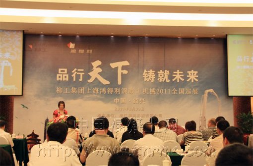 在紹興國際大酒店3樓的會議廳里,紹興市建設局、紹興混凝土協會領導以及當地的混凝土攪拌站生產企業代表和柳工鴻得利產品客戶齊聚一堂。下午3時會議準時開始,會議首先由紹興市建管局副局長潘培富和紹興市混凝土協會會長謝寶金發言,在發言過程中,兩位領導首先感謝柳工鴻得利給當地所做的貢獻,并預祝此次柳工集團上海鴻得利重工的紹興巡展能夠獲得圓滿成功,同時預祝柳工集團上海鴻得利重工的事業能夠蒸蒸日上。