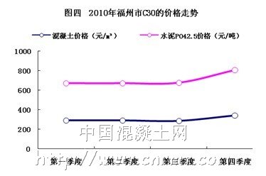 2、2010年福建省預拌混凝土C30價格走勢