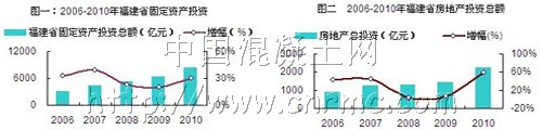 近年來,國務院大力支持福建省加快建設海峽西岸經濟區。2010年,福建省加大投資力度,改善基礎設施,力促經濟發展,壯大經濟區的總體實力。全年全省固定資產投資8273.42億元,比去年同比增長30.04%,增幅同比上升了10個百分點,投資增速節節攀升,符合宏觀調控預期。累計同比增速較2006-2009年各年同期平均增速28.83%,高了0.12百分點,這說明當前城鎮固定資產投資增速仍處于較高水平。在固定資產增長的態勢下,房地產市場的發展環境有了很大的變化,發展的宏觀環境逐步變好,有效需求不斷增加。福建省2010年房地產投資額為2246.15億元,較2009年上漲58.5%。(投資數據來源于國家統計局和福建省統計局,圖一、圖二涉及福建省2006年-2010年固定資產和房地產投資總額)