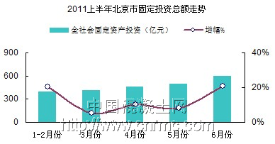 北京作為中國首都,直轄市之一,集全國政治、文化和國際交流中心為一體的內陸城市的核心要塞。奧運會前期,奧運建設工程以及城市配套項目建設的展開,北京迎來了工程建設的新高潮,同時促進了預拌混凝土行業的發展。“十二五”時期,北京將進入城市化發展時期。2010年,北京固定資產投資達到5493.5億元,同比增長13.1%,其中房地產開發投資達2901.1億元,同比增長24.1%;同年,北京市房屋建筑施工面積29440.4萬平方米,同比增長29.6%。2011上半年,北京市完成全社會固定資產投資2364億元,比上年同期增長15.6%。其中,6月當月完成投資598.4億元,較2010年6月增加了46.1億元;房地產開發投資1239.5億元,與去年同期相比增長3.7%。截止至2011年8月,北京市房地產施工面積首次破億,進入歷史新高。