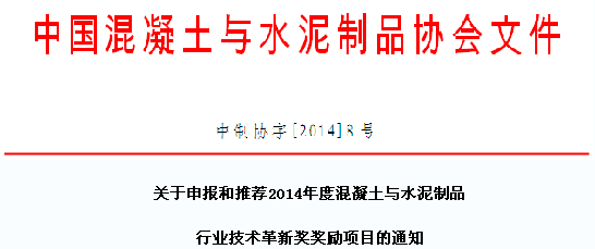 按照《混凝土與水泥制品行業(yè)技術(shù)革新獎管理辦法》的有關規(guī)定,經(jīng)研究,決定2014年度混凝土與水泥制品行業(yè)技術(shù)革新獎以“中技樁業(yè)杯”冠名,冠名單位為上海中技樁業(yè)股份有限公司。現(xiàn)將2014年度申報和推薦工作的安排通知如下: