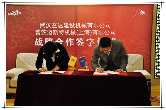 普茨邁斯特機械(上海)有限公司與武漢益達建設機械有限公司戰略合作框架協議簽約儀式于2011年11月14日上午在道遠科技園貴賓室隆重舉行。普茨邁斯特機械(上海)有限公司總裁助理侯雪梅、武漢益達建設機械有限公司副總經理周力行等雙方領導出席了儀式并發表講話。本著友好合作、互利互惠、共同發展、誠實守信的原則,雙方決定建立長期穩定、優勢互補的戰略合作關系,經過雙方友好協商,雙方在產品采購、市場資源共享、施工方案咨詢、售后服務、學員培訓等方面展開戰略合作。