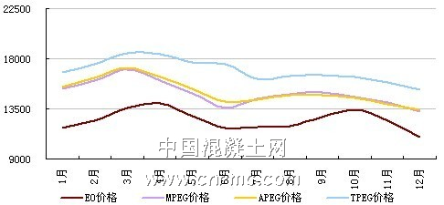 圖表6 2011年EO與MPEG\APEG\TPEG價格走勢(元/噸)