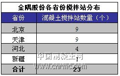 2011年全年實(shí)現(xiàn)混凝土產(chǎn)銷41.69萬(wàn)方、營(yíng)業(yè)收入11418.03萬(wàn)元;集團(tuán)混凝土子公司已達(dá)到38個(gè),同時(shí)公司參股的合營(yíng)攪拌站也已達(dá)28個(gè),主要分布在廣東、江西、福建等地,其中以廣東為主要發(fā)展地區(qū)。混凝土攪拌站在鞏固公司水泥銷售和穩(wěn)定水泥價(jià)格方面的協(xié)同作用初見(jiàn)成效。