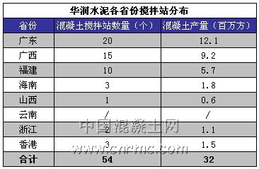 華潤(rùn)集團(tuán)部分混凝土攪拌站分布圖