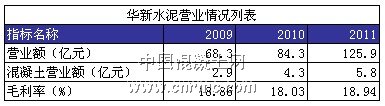 截止2011 年年底,華新水泥各省份混凝土攪拌站為31個(gè)。湖北省內(nèi)拌站數(shù)量達(dá)到22個(gè),其他拌站分別分布在湖南、河南、四川等地。目前,還有個(gè)別攪拌站項(xiàng)目正在籌劃中,預(yù)計(jì)“十二五”期間將陸續(xù)建成。2011年,公司混凝土實(shí)現(xiàn)新增產(chǎn)能420萬(wàn)方,混凝土總產(chǎn)能超過(guò)1000 萬(wàn)方。營(yíng)業(yè)收入5.84億元,營(yíng)業(yè)成本4.73億元,毛利率為19%。公司實(shí)施“水泥-混凝土協(xié)同”戰(zhàn)略,加大混凝土業(yè)務(wù)的發(fā)展力度,實(shí)現(xiàn)對(duì)水泥渠道的有效拓展,以應(yīng)對(duì)淘汰水泥產(chǎn)能的相關(guān)規(guī)定。2012 年,公司定增17.43億發(fā)展預(yù)拌混凝土,計(jì)劃銷售混凝土510 萬(wàn)方,增長(zhǎng)約152%;預(yù)計(jì)實(shí)現(xiàn)營(yíng)業(yè)收入較2011 年增長(zhǎng)17%左右。