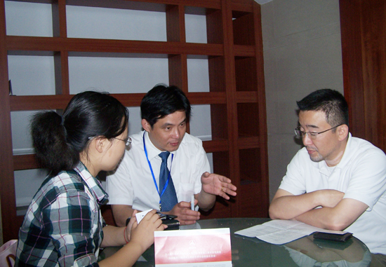 南通宇部混凝土有限公司總經理藤嶽暢成(右一)與中國混凝土網CEO王驊(右二)在采訪現場