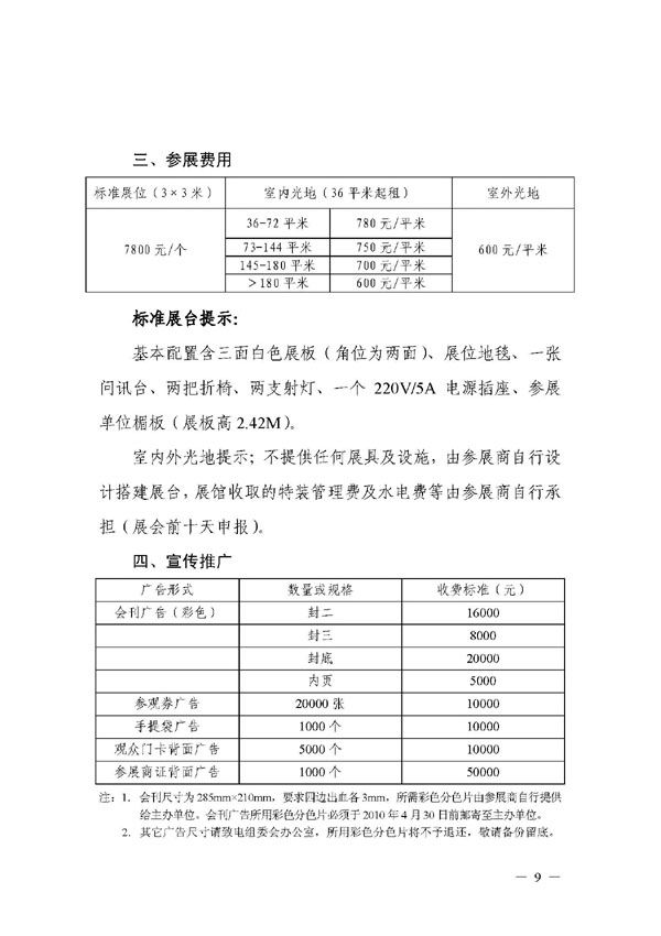展位 號(hào)館 號(hào)標(biāo)準(zhǔn)展位 個(gè) 室內(nèi)光地 平方米 對(duì)電∕水要求:電壓 V A 水源要求:日使用 立方米 應(yīng)付費(fèi)用總計(jì)(人民幣) 元 ¥ 元