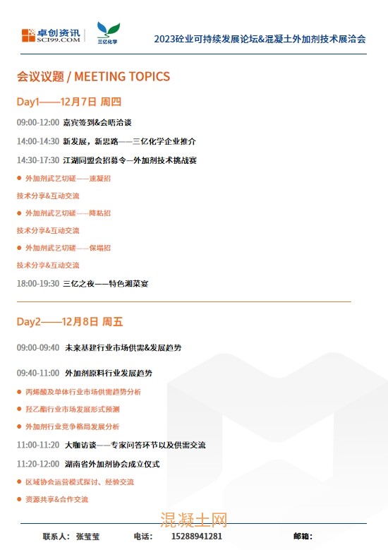 2023砼業可持續發展論壇&混凝土外加劑技術展洽會