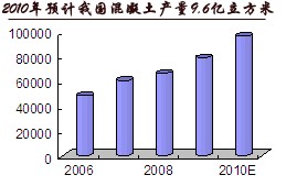 公司2010年生產銷售商品混凝土預計為380萬立方米,由于受世博會的影響,下轄多家拌站開工不足,致使混凝土產量同比減少了17%。,但仍是上海地區(qū)規(guī)模較大的商品混凝土生產企業(yè)。 |