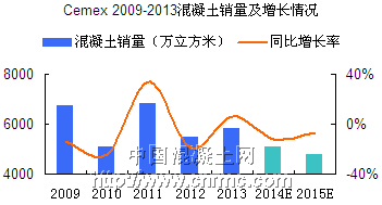 全球最大的建筑材料和水泥生產商之一Cemex公司2013年全年銷售額達152.27億美元,同比增長1.5%;混凝土銷量5830萬方,同比增長6%。公司表示,銷售額的增長是由于在美國、地中海地區、亞洲、南美洲、中美洲和加勒比地區交易量的增長,以及公司在大部分業務地區提高了產品售價。 |