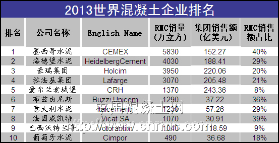 2010年度世界混凝土企業十強評選揭曉 |